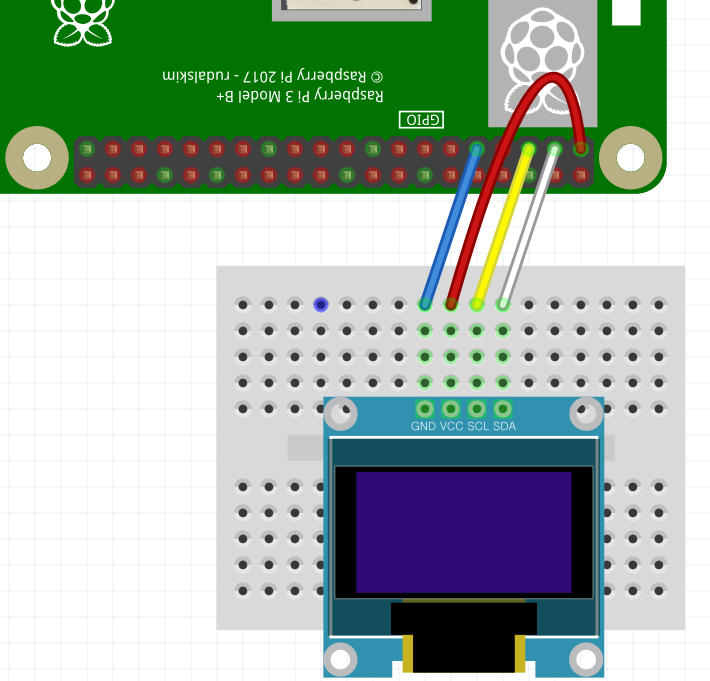 라즈베리파이와 SSD1306 OLED 디스플레이를 아래와 같이 연결합니다.