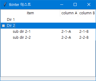 tree.insert(id2, "end", text="sub dir 2-2", values=("2-2-A", "2-2-B"))